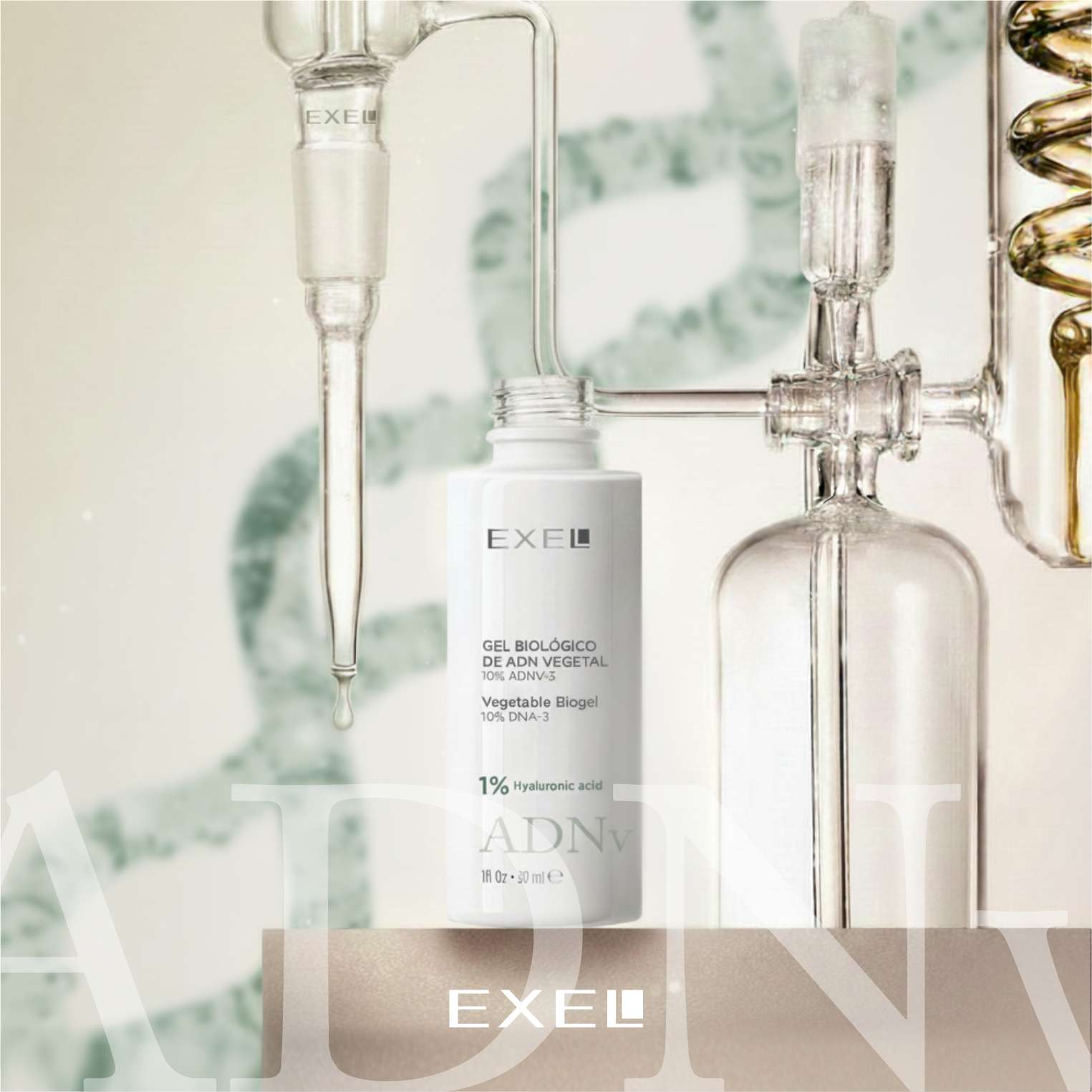 Contiene potentes humectantes como PCNA (Pirrolidón Carboxilato de sodio) y Ácido hialurónico (sal sódica) y la adición de Vitamina C, de fuerte acción antioxidante. 10% ADNV-3: Extracto de origen vegetal enriquecido en ADN.